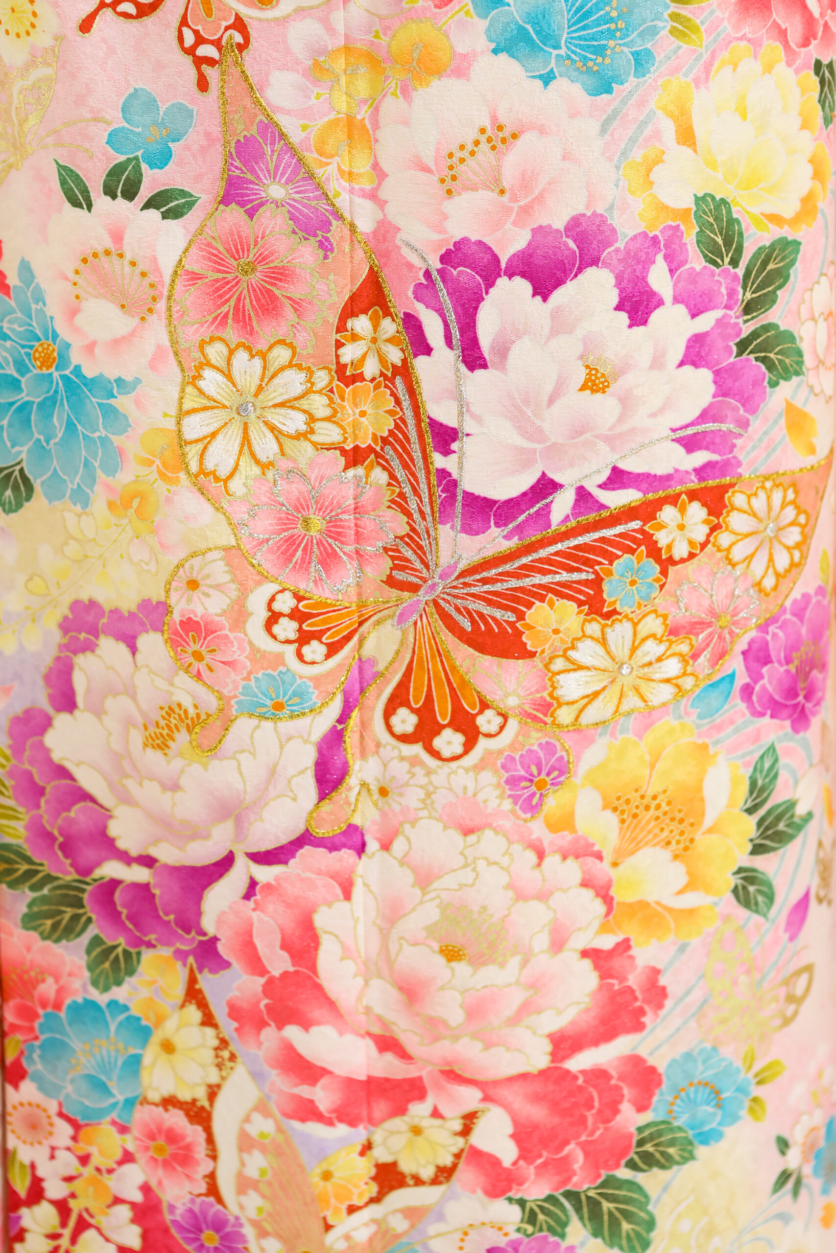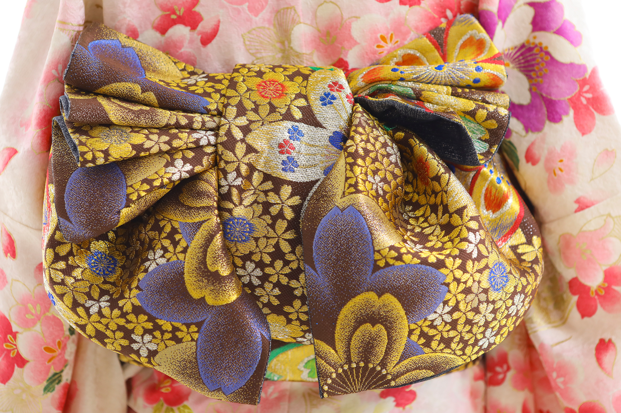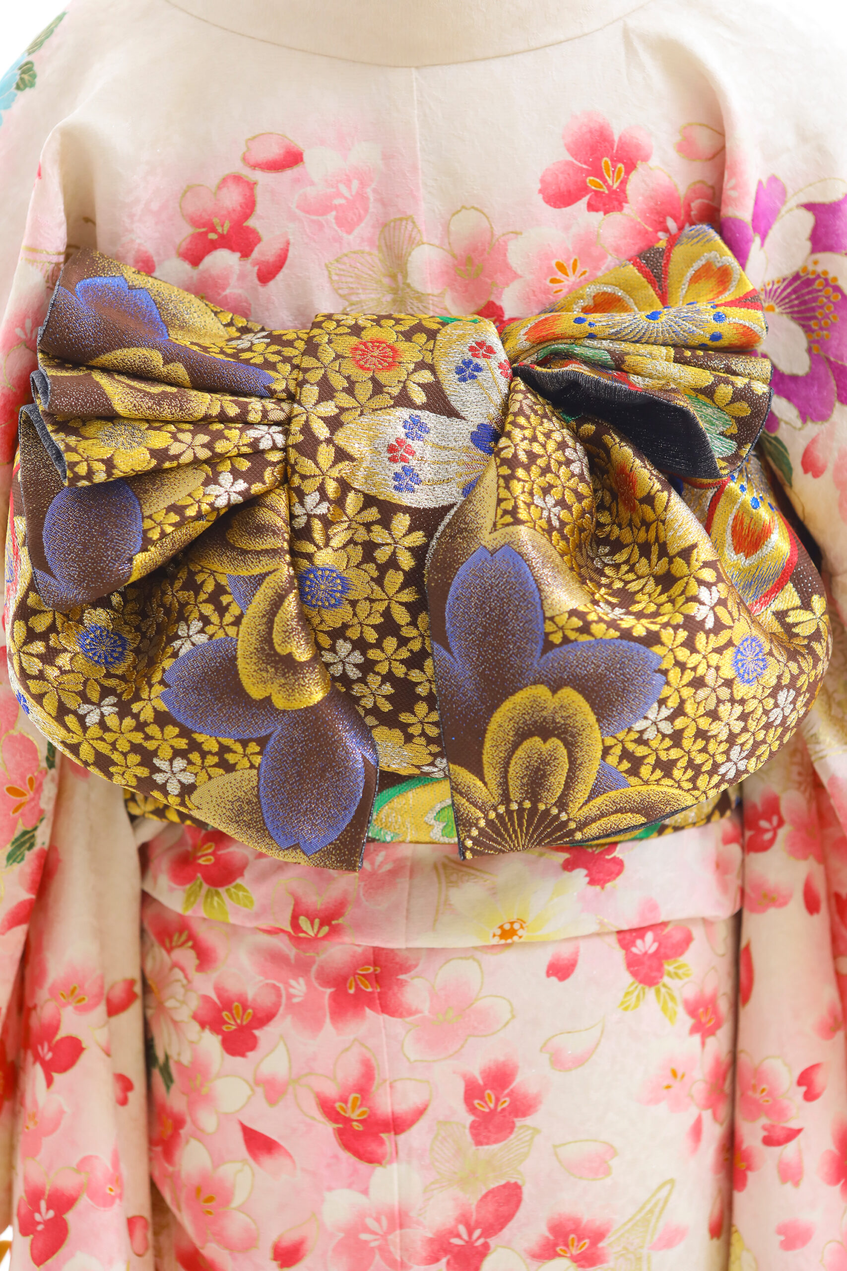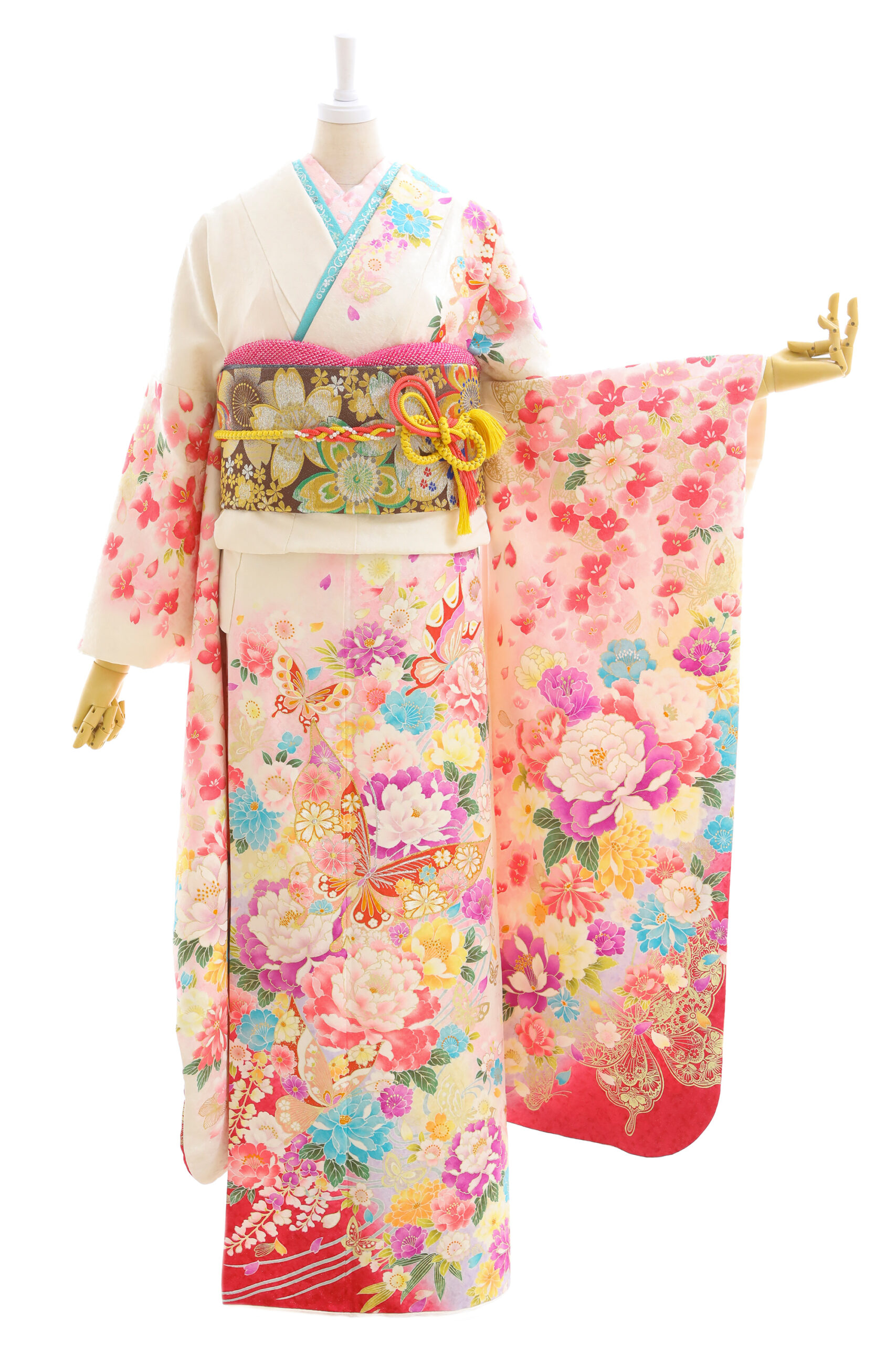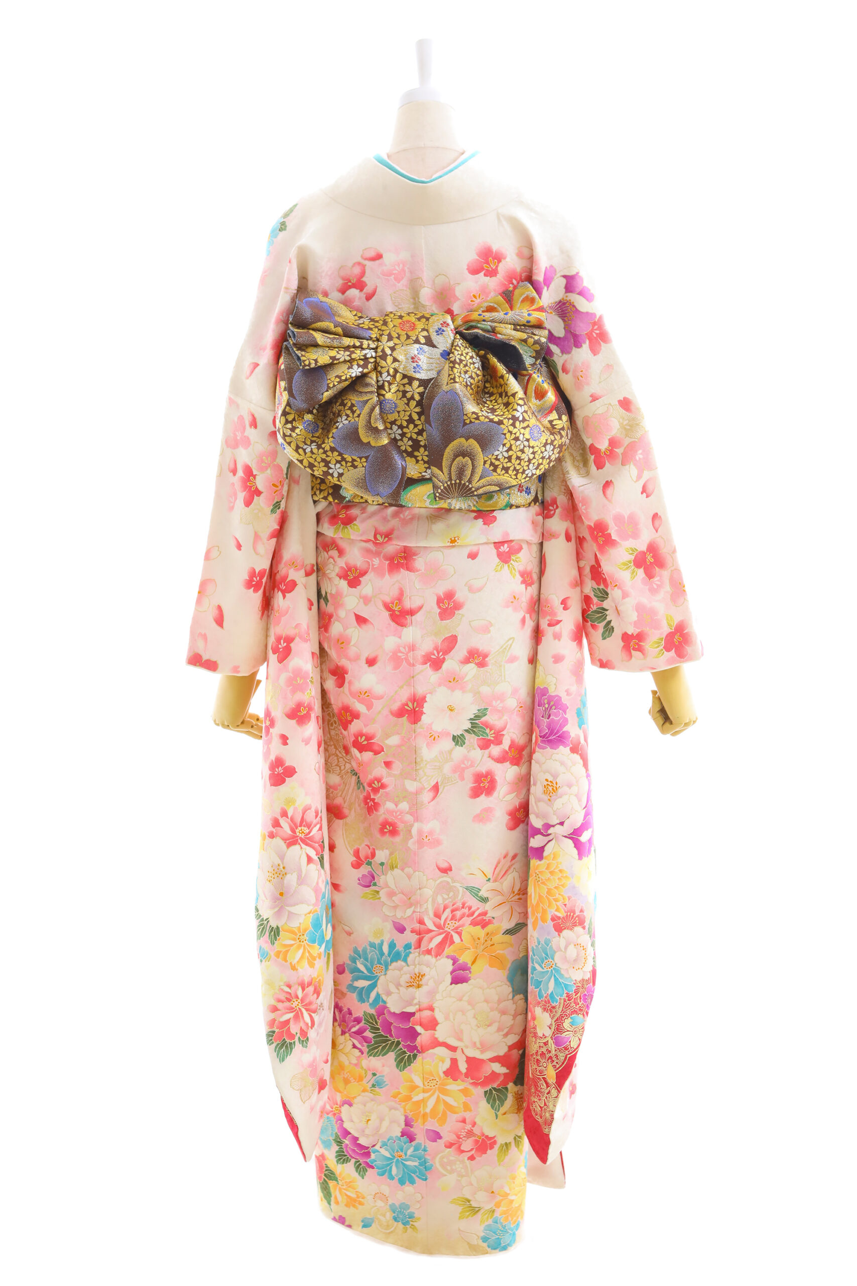 美しい白地、たくさんの花に囲まれて、 祝福感や華やかさ満点のお振袖。 お顔も明るく豪華に着こなせます。