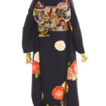 重みのあるマットな漆黒に、大柄古典がコントラスト。 とことんレトロに着こなしてオシャレさんに。