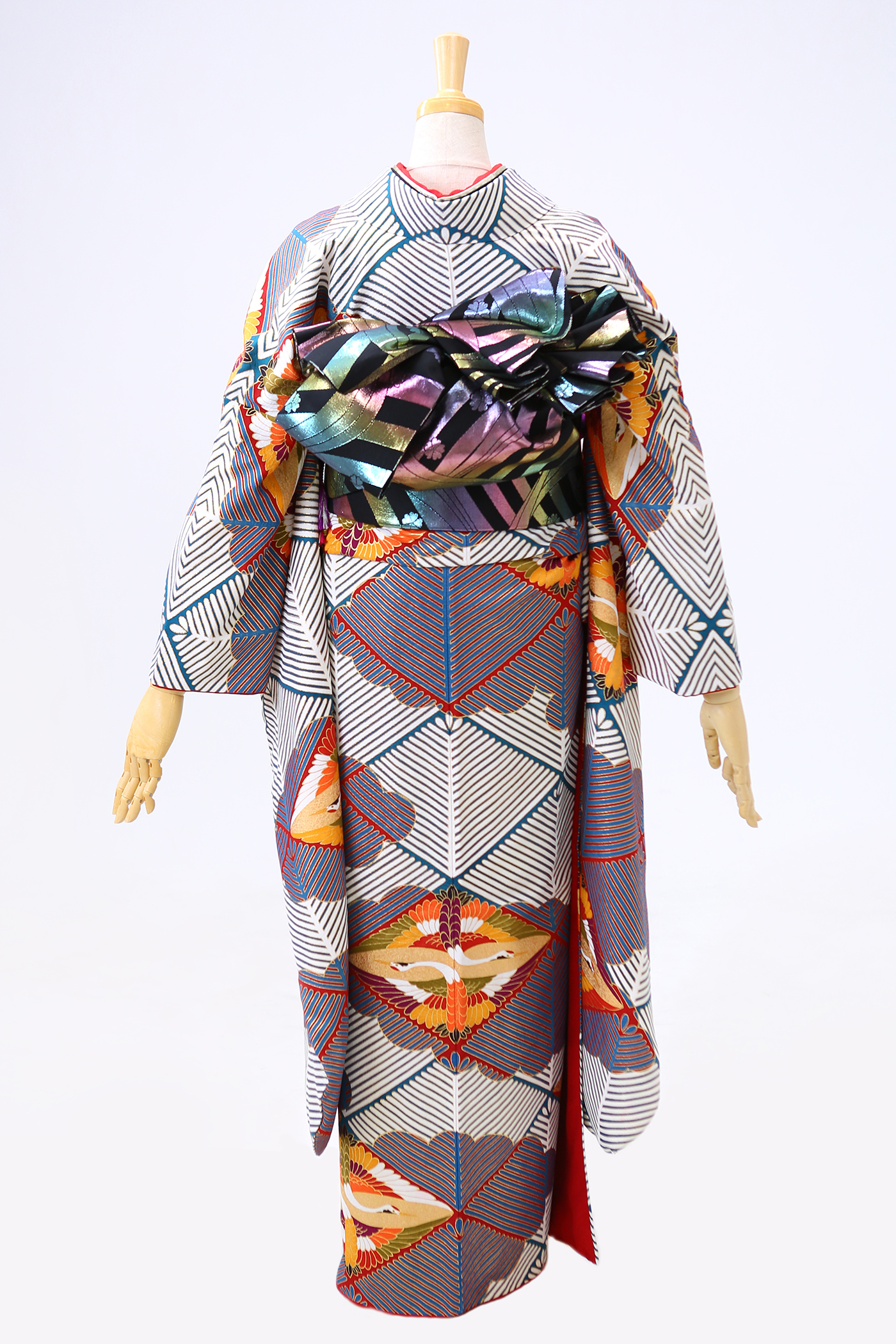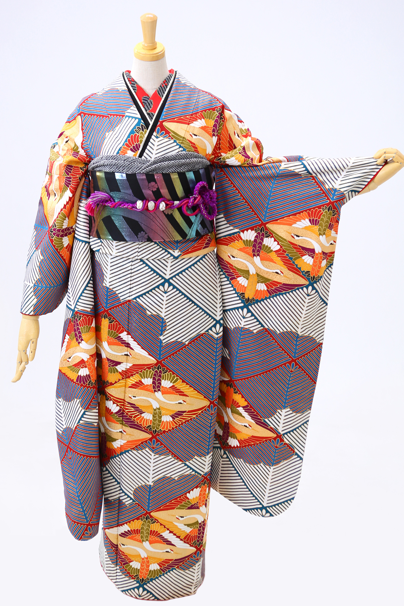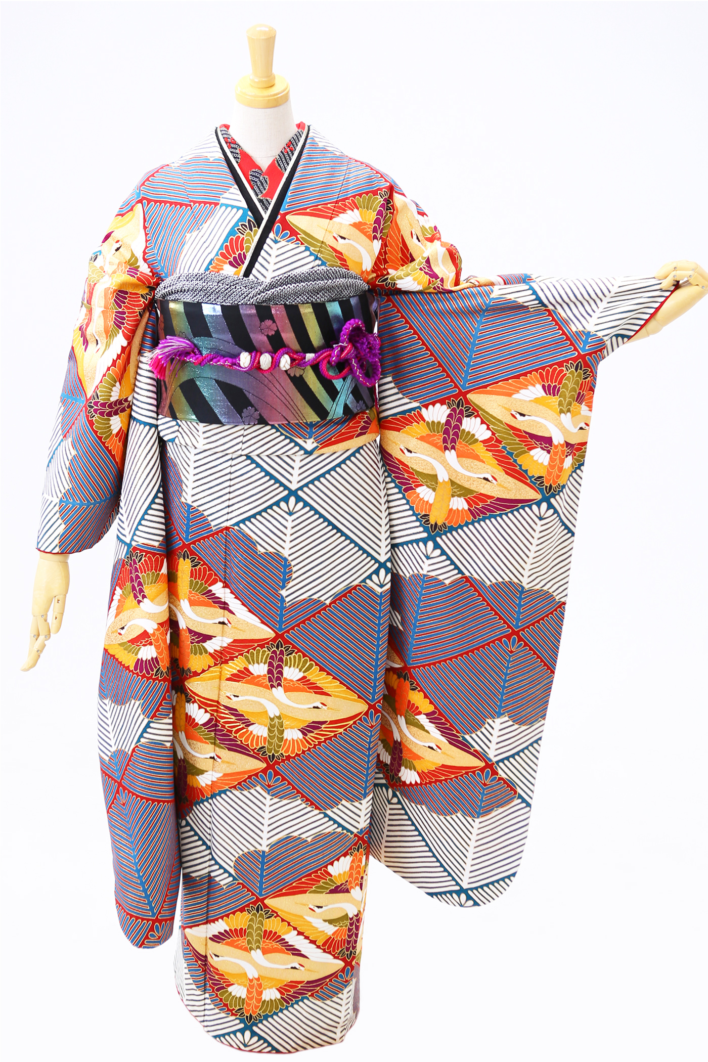 計算されたモダンな配色の菱形は、古さを感じない次世代古典柄。オシャレさんに大変人気のある振袖です。