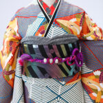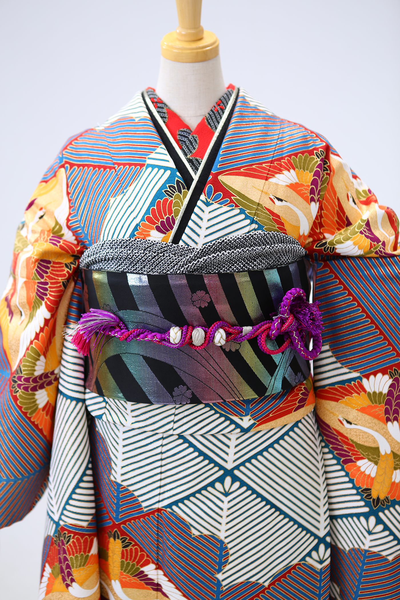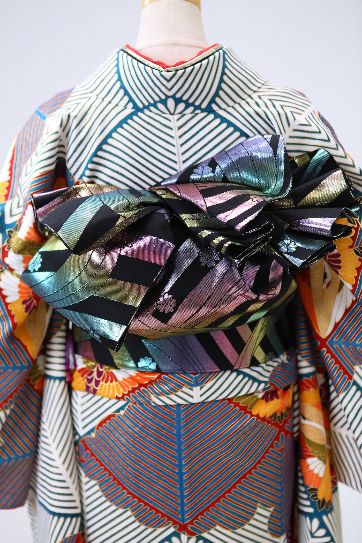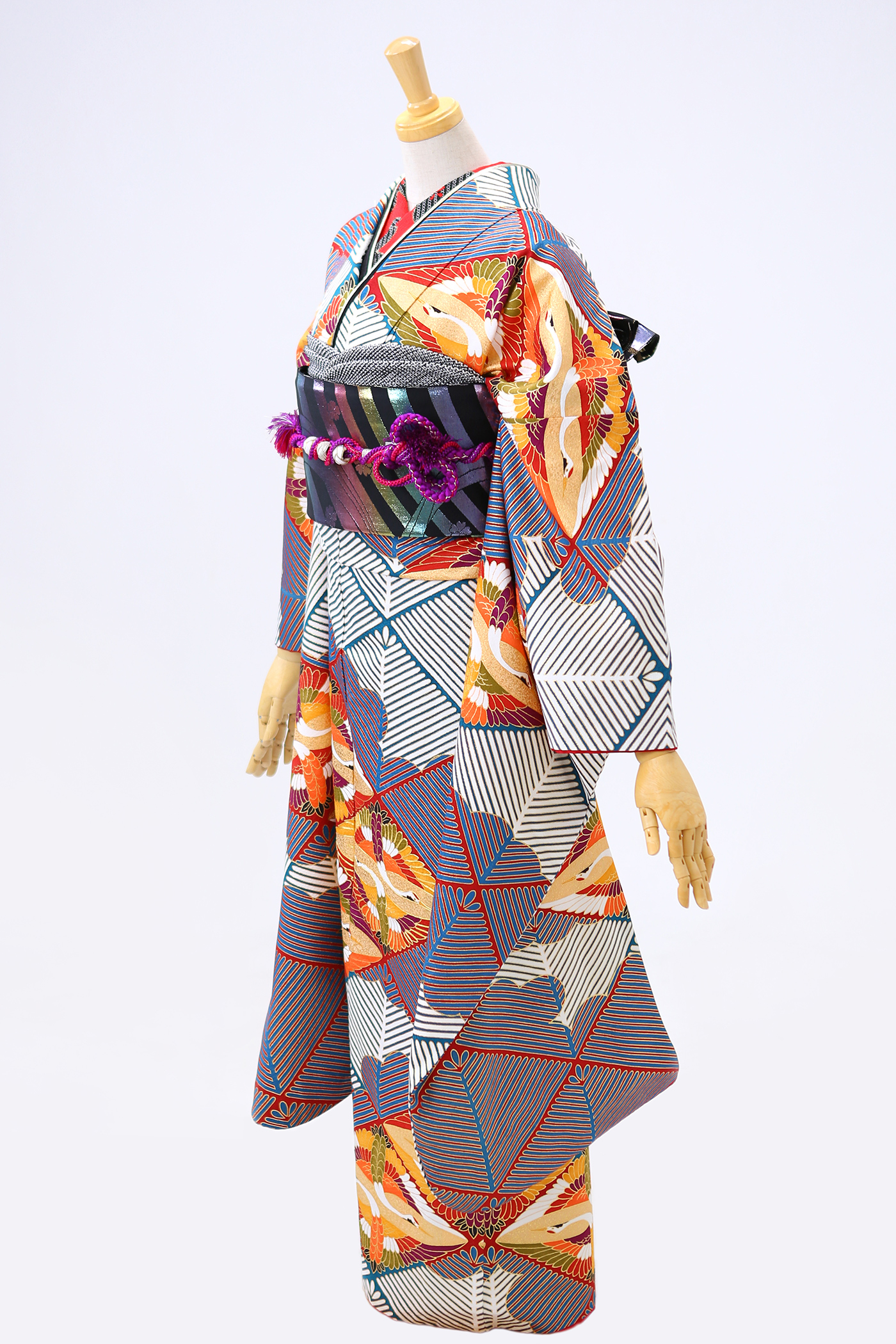 計算されたモダンな配色の菱形は、古さを感じない次世代古典柄。オシャレさんに大変人気のある振袖です。