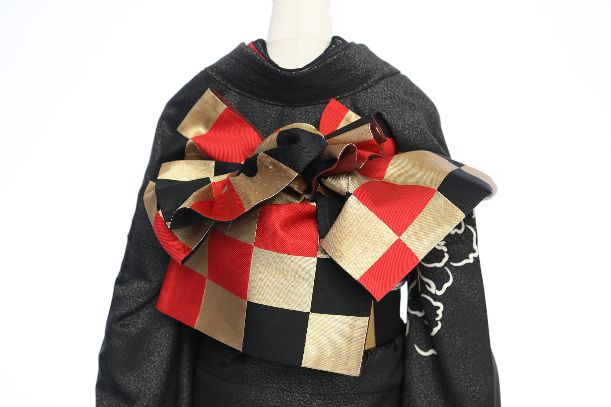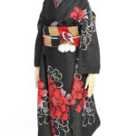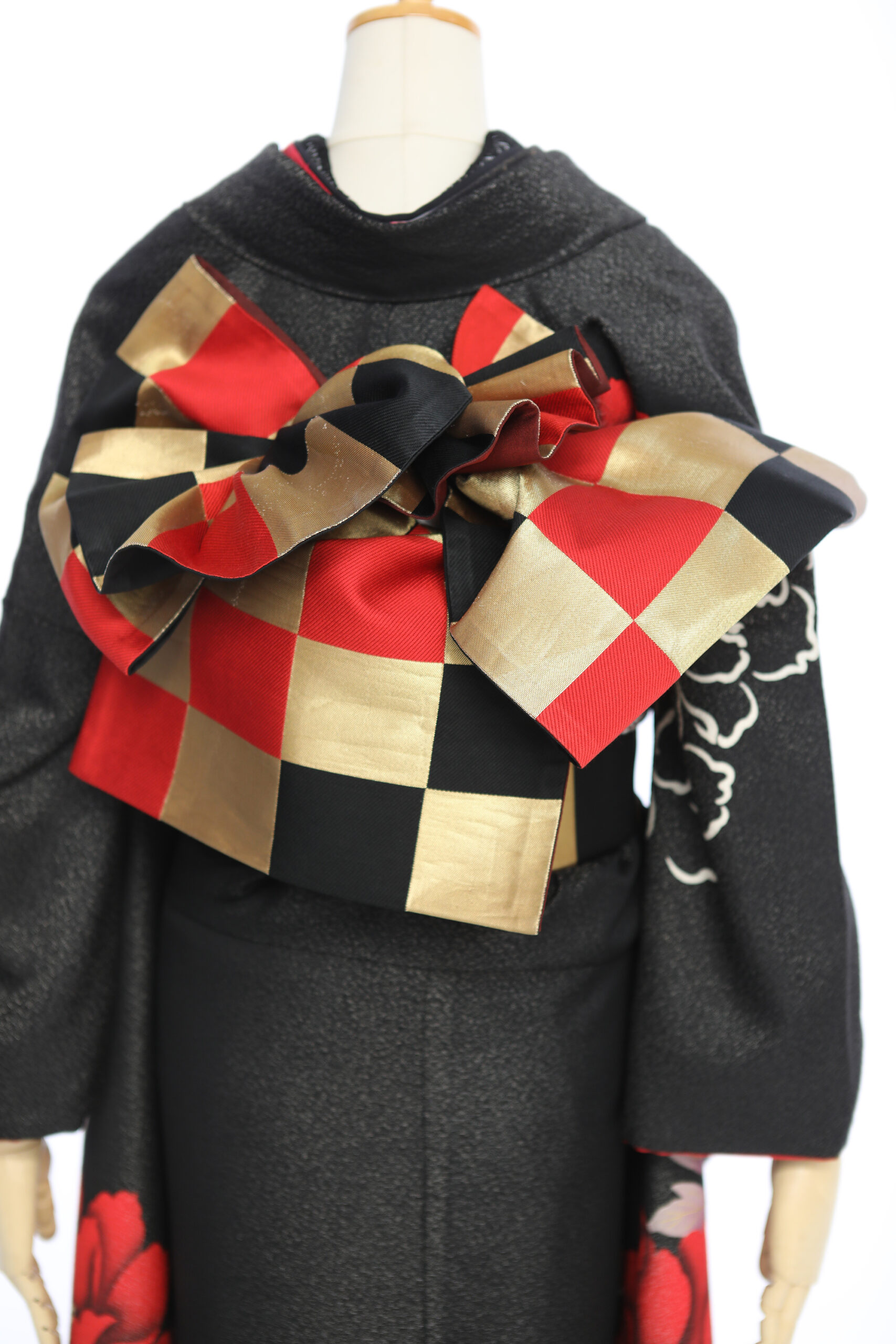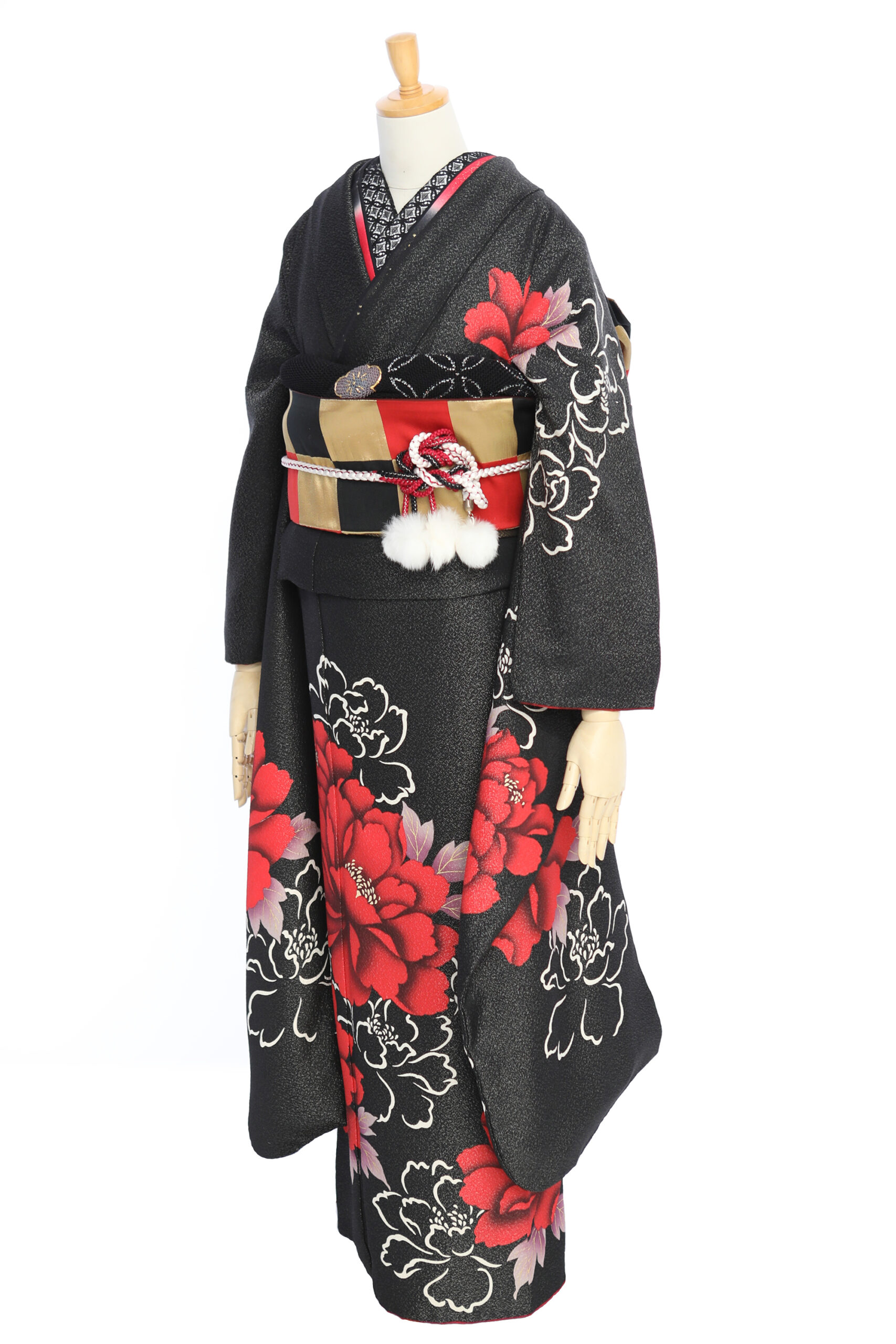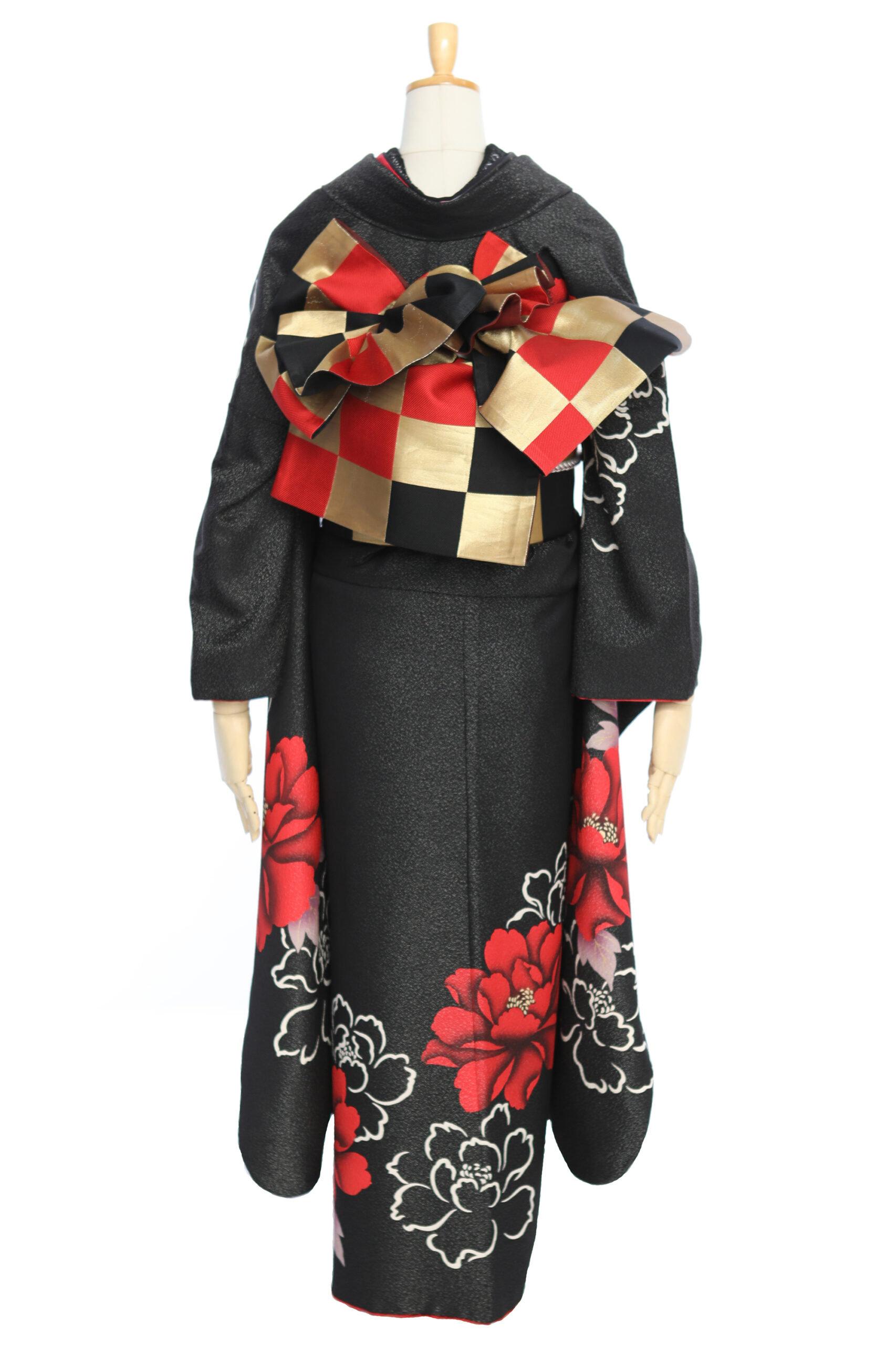 鮮やかな赤い大牡丹。黒×赤でキリッと引き締まるカラー。カッコよく尖って目立てるデザインです。