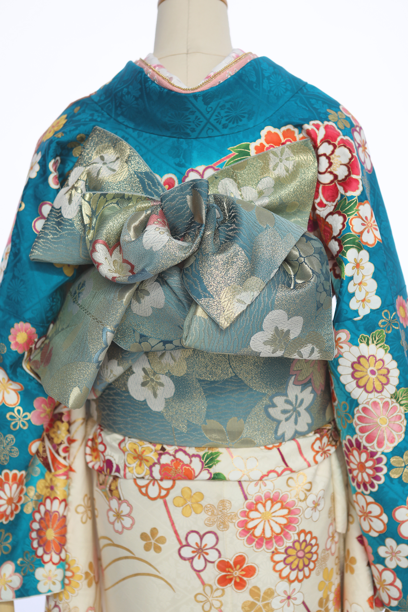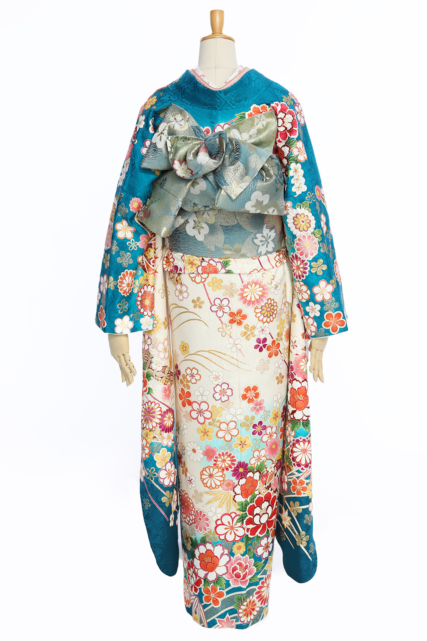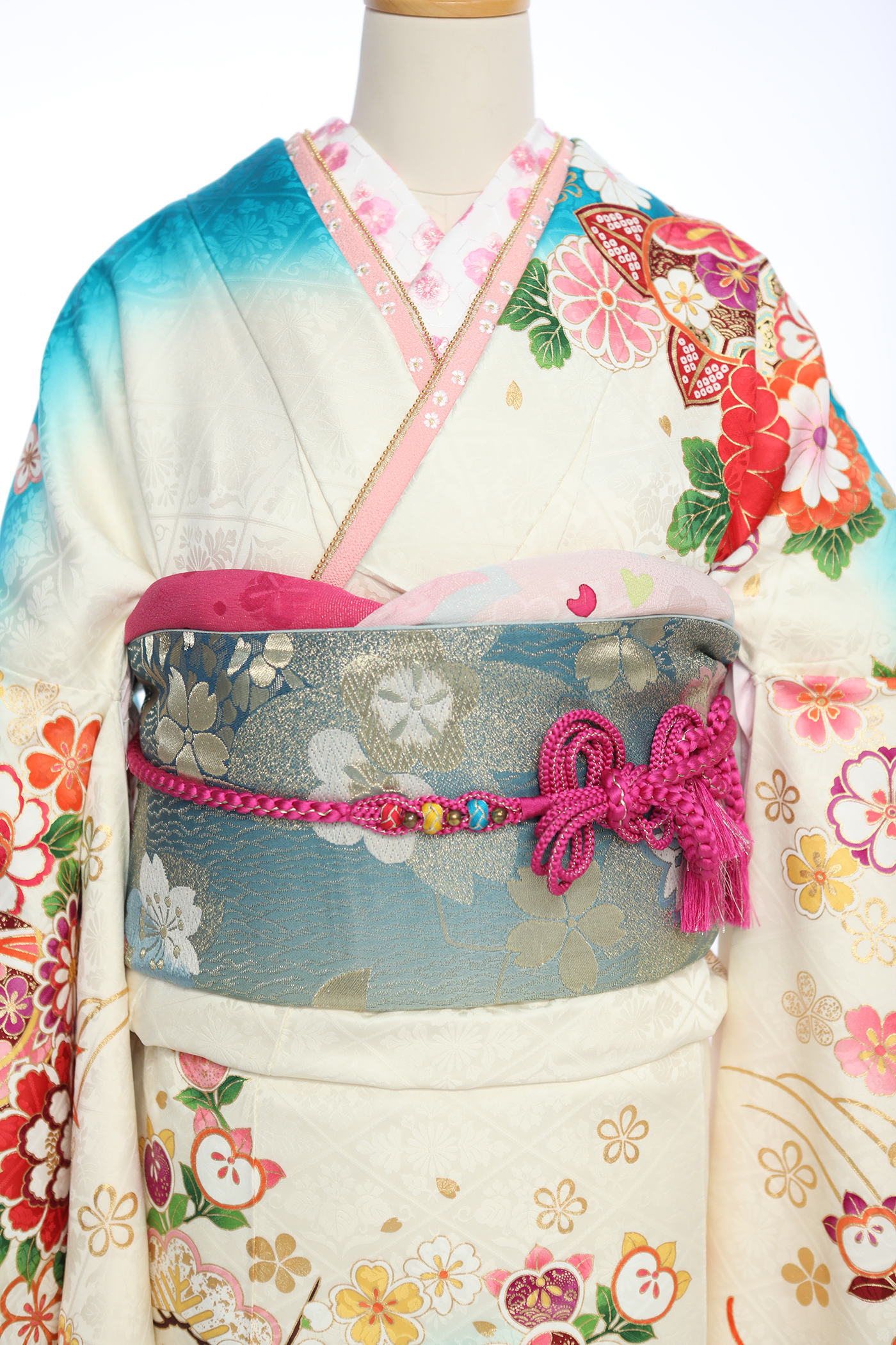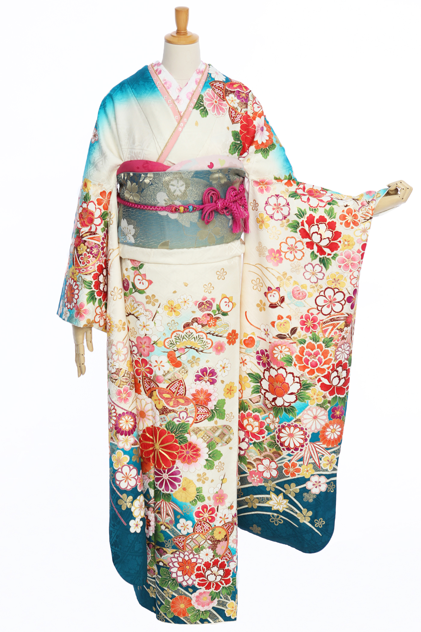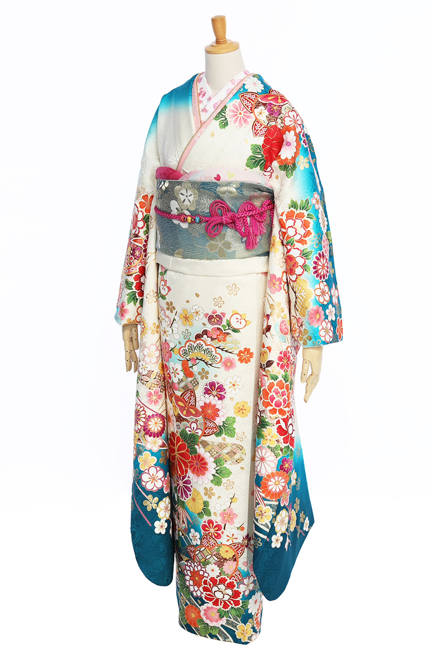 透き通る綺麗なブルーグラデーションが美しい。キレイ系にもカワイイ系にもなれる、王道古典振袖。